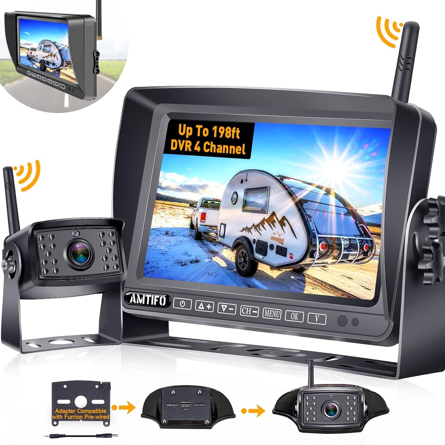Trailer Backup Camera HD 1080P Back Up Camera Systems Wireless with 7 Inch DVR Monitor Car Security Camera System for Truck RV Camper Adapter Compatible with Furrion Pre-Wired RVs - AMTIFO A5